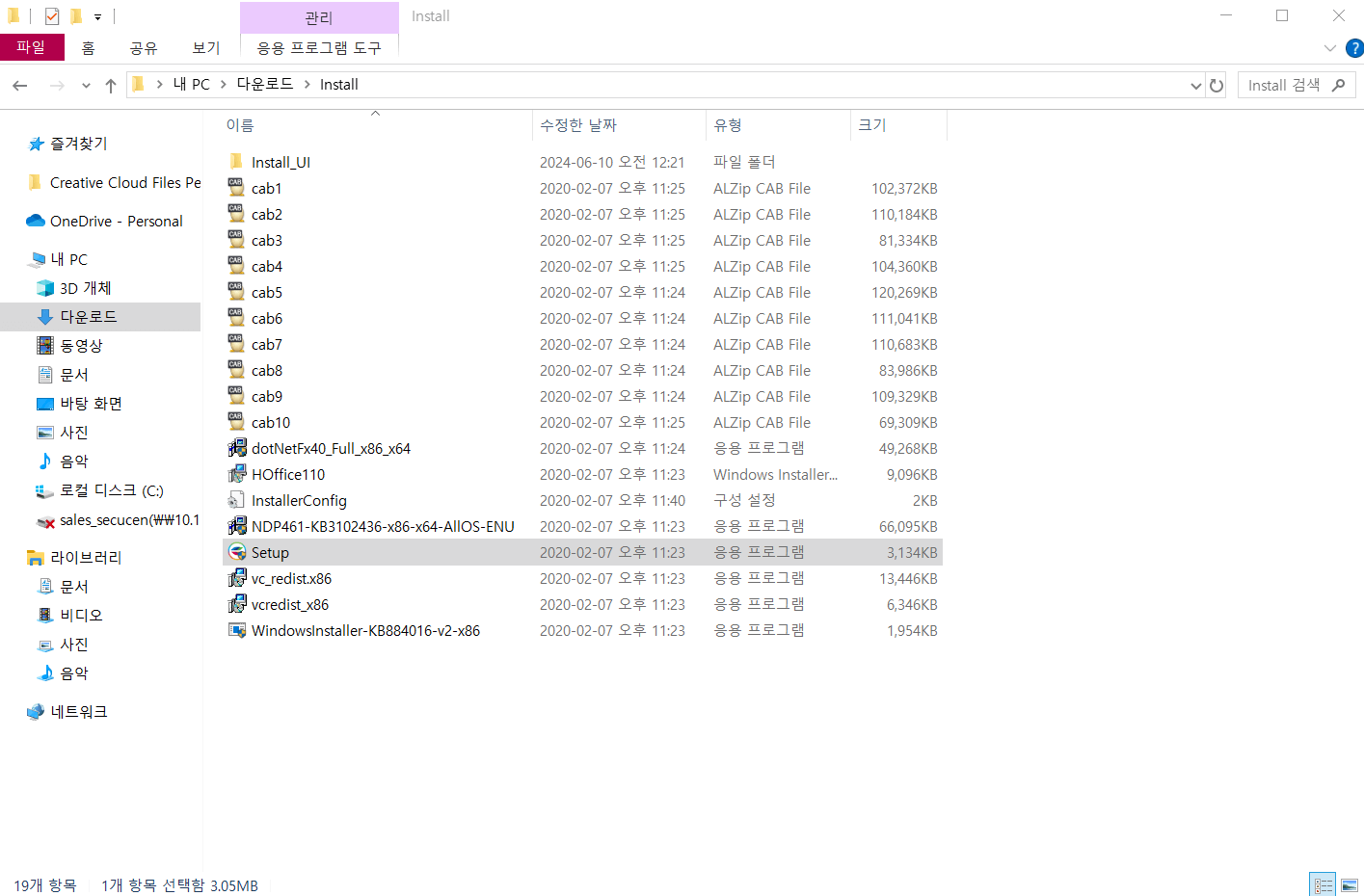 Install 파일 안에 있는 Setup 응용 프로그램을 클릭합니다.