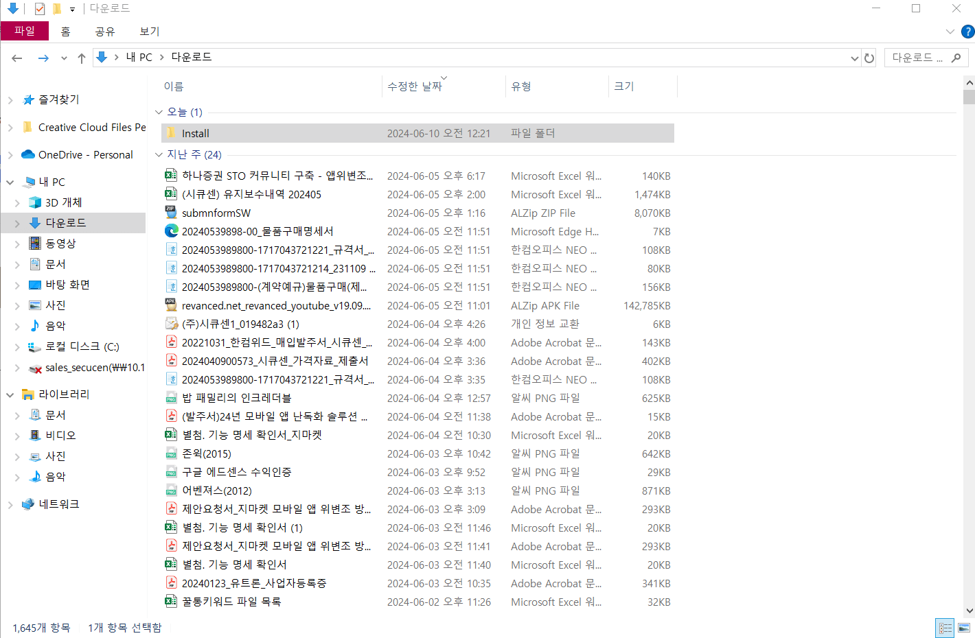 압축을 제대로 푸셨다면 아래 사진과 같이 Install 파일이 보이실 겁니다. install 파일을 클릭해주세요.