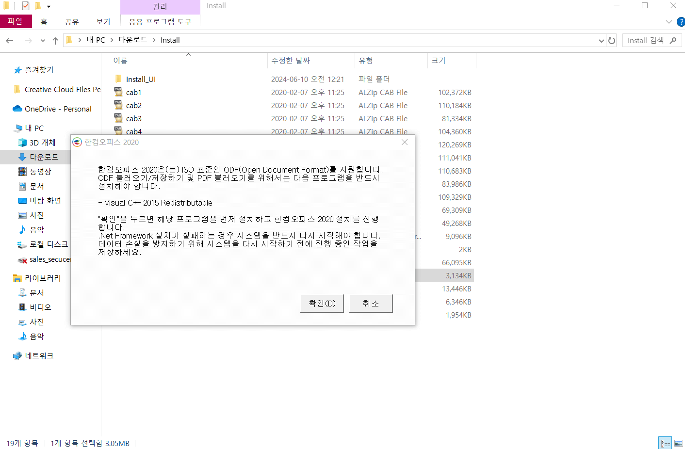 Setup 파일을 클릭하면 아래 사진과 같이 한컴오피스 2020 안내가 나옵니다. 확인 버튼을 눌러주세요~